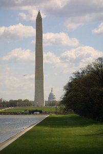 The Washington Monument was built from 1848 to 1884 to honor the nation's first president. The monument stands 555 feet, 5 1/2 inches tall, making it the tallest structure in Washington, D.C., and the tallest in the world until the Eiffel Tower was completed in 1889. The Washington Monument is still the tallest stone structure in the world. There were many halts in construction due to lack of funds, disputes within the society that was building the monument, and the Civil War. When the monument first opened to the public, there was a twenty minute elevator ride to take or 897 steps to climb.